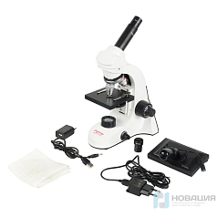В прибор встроены 2 светодиодных источника проходящего и отраженного света. Предусмотрена цифровая окулярная камерой с 5-дюймовым LCD-монитором, наблюдение через которую не напрягает глаза.