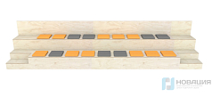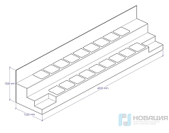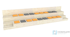 Подиум оснащен 18 съемными подушками, которые не крепятся к сиденью. На второй ярус ведут широкие боковые ступени. Может использоваться для лекций и открытых уроков.