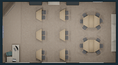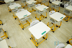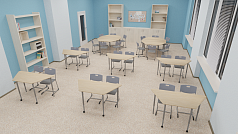 Столы комбинируются между собой. Перед работой в группах изделия сдвигаются, выстраиваются в фигуры и волнообразные композиции. Параметры мебели подстраиваются под аудиторию: высота стола фиксируется в 5-ти положениях.