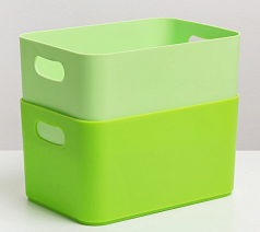 Благодаря специальным, разным, боковым сторонам, несколько ящиков можно составить друг на друга или вложить один в другой.