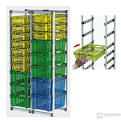 Вместительная стойка для контейнеров шириной 40 см. На один стеллаж можно поместить контейнеры с разной или одинаковой высотой (направляющие можно установить на разном расстоянии друг от друга).