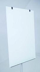 Магнитно-маркерная доска с белой поверхностью оборудуется креплениями для блока бумаги. Листы переворачиваются по принципу блокнота.
