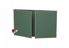Школьная доска оснащается 2-мя подвижными секциями на петлях и 5-ю рабочими поверхностями для письма мелом. Стальные листы закрепляются в металлическом профиле с закругленными углами.