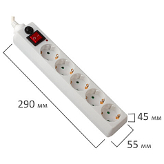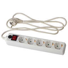 Сетевой фильтр SONNEN U-351, 5 розеток, с заземлением, выключатель, 10 А, 1,8 м, белый, 511424