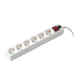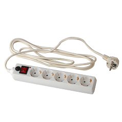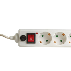 Сетевой фильтр SONNEN U-365, 6 розеток, с заземлением, выключатель, 10 А, 5 м, белый, 511427