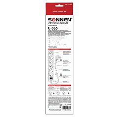 Высококачественный сетевой фильтр SONNEN U-365 – это простой, удобный и экономный вариант защиты электроприборов от негативных последствий перепадов напряжения. Устройство обеспечит бесперебойную работу любых электроприборов.