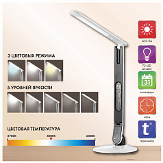 Настольная лампа-светильник SONNEN BR-898A прекрасно подойдет для школьника, студента и офисного сотрудника. Также данный светильник оборудован дополнительными функциями: календарь, часы, термометр.