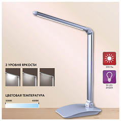 Светильник настольный SONNEN PH-3607, на подставке, светодиодный, 9 Вт, металлический корпус, серый, 236686