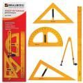 В наборе 9 предметов: циркуль чертежный, длина 125 мм, нержавеющий металл; пенал с запасным грифелем, карандаш чернографитный, точилка, ластик, треугольник 30°, треугольник 45°, транспортир, линейка 15 см.