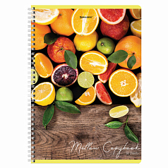 Тетрадь А4, 80 л., BRAUBERG, гребень, клетка, обложка картон, "Фрукты", 404051