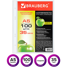 Папки-файлы МАЛОГО ФОРМАТА (148х210 мм), А5, ВЕРТИКАЛЬНЫЕ, КОМПЛЕКТ 100 шт., 35 мкм, BRAUBERG, 221714