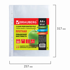 Папки-файлы перфорированные А4+ BRAUBERG, КОМПЛЕКТ 50 шт., гладкие, СВЕРХПРОЧНЫЕ, 110 мкм, 222159