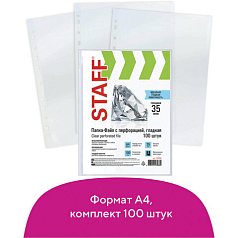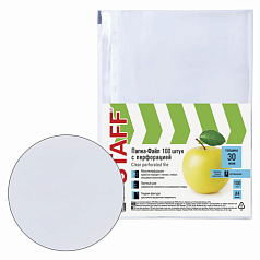 Папки-файлы перфорированные, А4, STAFF, комплект 100 шт., гладкие, 35 мкм, 226830