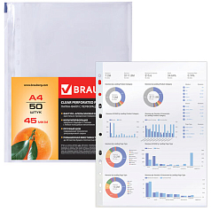 Папки-файлы перфорированные А4 BRAUBERG, КОМПЛЕКТ 50 шт., матовые, 45 мкм, 221712