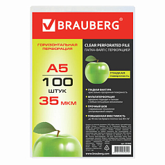 Горизонтальные перфорированные папки-файлы BRAUBERG предназначены для хранения документов и подходят для подшивки в папки с любым кольцевым механизмом и скоросшивателем.
