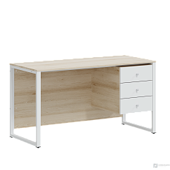 Столешница изготовлена из ЛДСП толщиной 22 мм и облицована ударопрочной кромкой ПВХ 2,0 мм. Царга выполнена из ЛДСП толщиной 16 мм и облицована кромкой ПВХ 0,4 мм. Детали стола соединяются между собой при помощи эксцентриковых стяжек, евровинтов и винтов. В столешницу вмонтированы две розетки кабельного канала. Опоры оснащены пластиковыми заглушками с регулируемыми подпятниками М8.