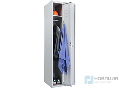 Шкаф предназначен для хранения рабочей одежды и инвентаря. Состоит из вертикальной перегородки, 3 полок, держателя, крючков для одежды, перекладины для плечиков. Оснащен ключевым замком с возможностью смены цилиндра.