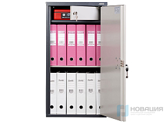 Шкаф с двумя переставными полками предназначен для хранения документов. В комплект входят ключевые замки. Есть встроенное отделение, которое закрывается на ключ.