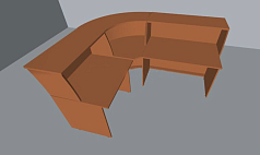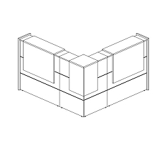 Мебельный комплекс для администратора состоит из 4-х прямых модулей, 2-х угловых модулей, 4-х накладок, 3-х металлических опор, 2-х боковин.