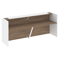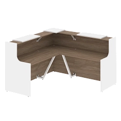 Мебельный комплекс для администратора состоит из прямого модуля, 2-х боковин, накладки. Столешница функциональной мебели оснащаются заглушками из пластика, которые прикрывают отверстия для кабеля.