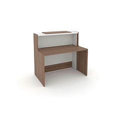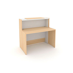 Стойка администратора с надставкой и кабель-каналом на прямоугольной столешнице позволяет установить стационарный ПК, а также хранить необходимую литературу. Такая вместительная и прочная мебель хорошо подходит для оснащения читальных залов, библиотек. Боковые экраны стойки выполняют функцию сплошных деревянных опор.