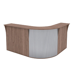 Мебельный комплекс для администратора состоит из 2-х прямых стоек, 1 угловой стойки и 2-х письменных столов. Возможна прокладка кабеля внутри опоры. Угловая стойка оснащается роллетой (жалюзи). Столешницы функциональной мебели оснащаются заглушками из пластика, которые прикрывают отверстия для кабеля.