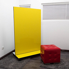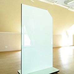 Доска с поворотным стеклянным полем используется в муниципальных учреждениях. 2-сторонняя поверхность позволяет фиксировать плакаты при помощи неодимовых магнитов или вести записи маркером.