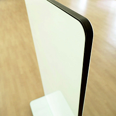 Стальные листы в профиле закрепляются на мобильной стойке. Углы поверхностей для работы скругляются и дополняются заглушками из пластика. Магнитно-меловое поле имеет шероховатое антибликовое покрытие.