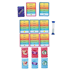 Набор для настольной игры оснащается песочными часами. Задания на скорость помогут школьникам разнообразить досуг, пополнить словарный запас и развить реакцию, отдыхая в летнем лагере.