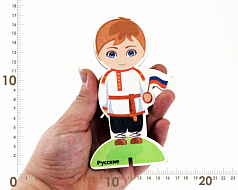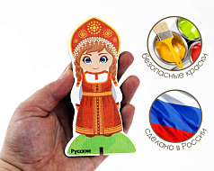 Для изучения национального разнообразия России предусмотрен комплект куклы в народных костюмах. Голова, верхняя часть туловища и нижняя часть куклы надеваются на основу-подставку.
