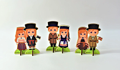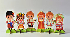 Набор фигурок в стилизованных костюмах используется на занятиях с дошкольниками. Миниатюрная модель человека наделяется типовыми национальными чертами. Куклы подходят для рассказов о культурных особенностях и традициях, дружбе народов, а также для сюжетно-ролевой игры или театрализованной постановки.