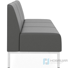 Диван составляется из пуфов с отдельными спинками. Модули расставляются произвольно, доступ открывается с 2-х сторон, что удобно для зон переодевания и отдыха.