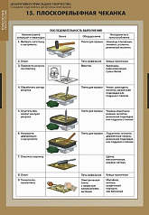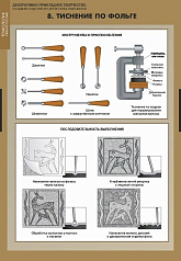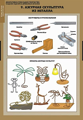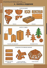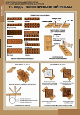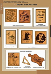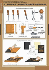 Комплект плакатов "Декоративно-прикладное творчество. Резьба по дереву, выпиливание, выжигание" представлен на 12-ти листах.