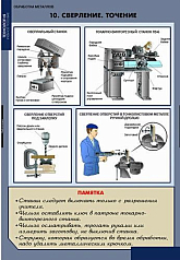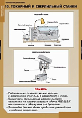 Предназначен для обучения школьников правилам поведения при работе с техникой и предостережения возникновения травм и ушибов. На стенде в кратком виде и доступной форме отражена информация о правилах поведения при работе на токарном станке, фрезерном станке, сверлильном станке, заточном станке, токарном станке, деревофуговальном станке.