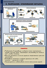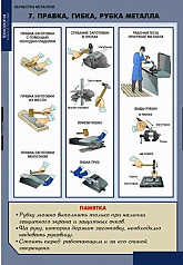 Предлагаемый стенд иллюстрирует разновидности режущих инструментов: зубило, крейцмейсель и канавочник. Приведены способы их заточки и правила соблюдения техники безопасности в период проведения работ.
