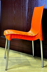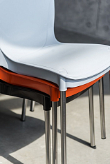 Благодаря специальным заглушкам ножки стула не скользят и не царапают напольное покрытие. Лицевая поверхность сидения и спинки имеет декоративную текстуру, данный вид мебели запоминается характерной плавностью линий. Эстетичные яркие цвета помогают оживить изящный силуэт и придать обстановке оптимистичный и нарядный вид.