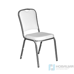 Стул размещается на четырех опорах, которые оснащены пластиковыми заглушками. Высокая спинка имеет скругленные углы. Каркас изготовлен из электросварной трубы.