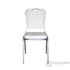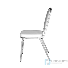 Стул на хромированных ножках оснащен мягким посадочным местом. Высокая спинка и сиденье с изогнутым передним краем равномерно распределяют нагрузку до 120 кг.