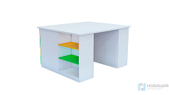Открытые полки под столешницей идеально подходят для хранения швейных принадлежностей, обеспечивая легкий доступ к необходимым инструментам и материалам. В центре стола расположен выдвижной ящик, который позволит хранить мелкие детали и аксессуары, сохраняя порядок на рабочем месте.