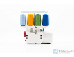 Модель оверлока рассчитана на четыре нити, обеспечивая возможность шитья и обработки краев ткани. Скорость составляет 1200 стежков в минуту, что ускоряет работу.