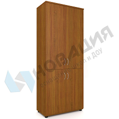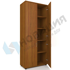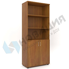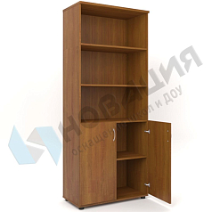 Полуоткрытый шкаф размещается в кабинетах ДОУ, школ, прочих муниципальных учреждений. Подходит для хранения пособий и документов; снабжен регулируемыми опорами. Имеет 3 полки; из них 2 — в верхней, открытой, части, и 1 полка внизу, за дверцами из ДСП.