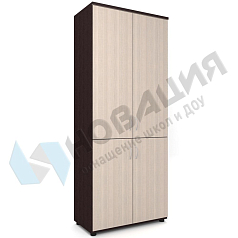 Шкаф размещается в кабинетах ДОУ, школ, прочих муниципальных учреждений. Состоит из 3-х секций (верхняя секция — 2 полки, глухие дверцы; средняя секция — открытая ниша; нижняя секция — 2 полки, глухие дверцы). Подходит для хранения бумажных документов. Опоры шкафа регулируются.