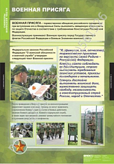 Стенд "Юный патриот" содержит информацию о том, что такое военная присяга, а также пять кармашков, которые преподаватель может заполнить любой полезной информацией по данной теме. Выполнен из экологически чистого материала и подходит для использования в любом помещении.
