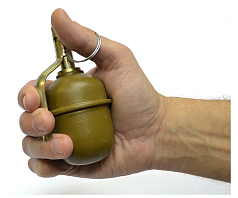 Макет для уроков ОБЖ и НВП копирует противопехотную ручную гранату (РГД-5, боевая наступательная). Взрывчатое вещество, детонатор и насечки корпуса отсутствуют.