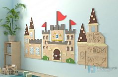 Настенная панель выполнена в виде замка. Изготовлена из гипоаллергенных материалов. На поверхности расположены окошки с цифрами и буквами русского алфавита.