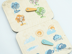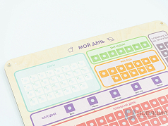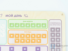 Визуальное расписание и календарь РАС расположены на крышке и боковой поверхности короба и служат для наглядного отображения ежедневных рутин, распорядка занятий, календаря и времён года для детей с РАС, которым трудно воспринимать на слух информацию и долго удерживать в памяти.