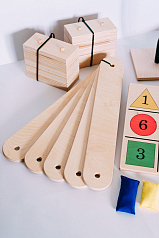 - Набор палочек (с веревочкой на конце, с рабочим концом типа вилка, с колечком) 3 шт., с веревочкой для палочки 1 шт.