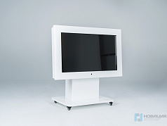 На корпусе предусмотрено место для монтажа к стене. Крепление VESA приобретается отдельно. При необходимости экран дополняется мобильной стойкой с колесами и фиксаторами.