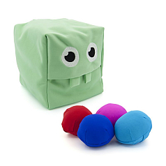 Набор представлен мягкими шариками-варежками и техникой для регистрации движений. Пользователь играет сидя или стоя (перед монитором ПК, экраном), 1 или 2-мя руками.