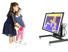 - конструкция подходит для детей в возрасте от 3 до 8 лет, в том числе, имеющих ОВЗ: угол наклона экрана регулируется пультом д/у, поставляемым в комплекте, удобный монитор достаточно чувствителен, а функционал предусматривает обучение слабослышащих и слабовидящих малышей;
